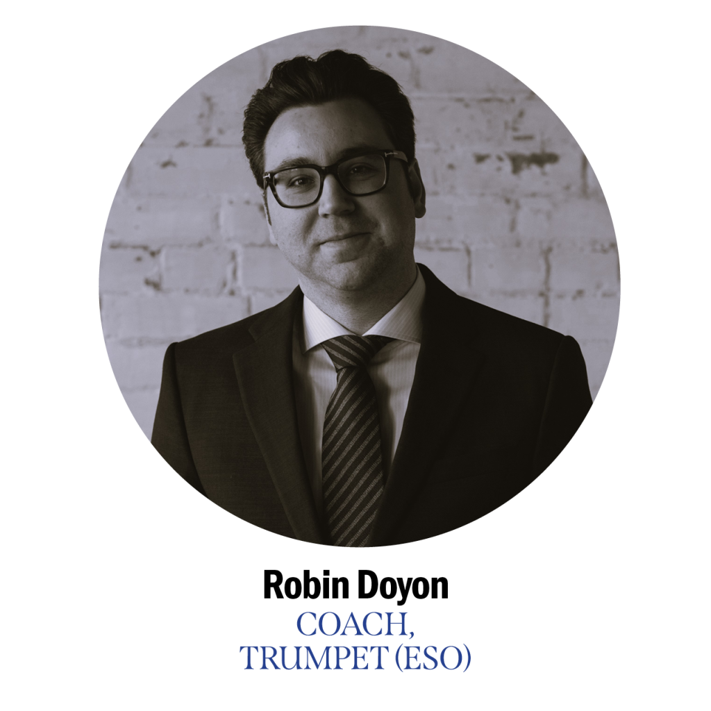 appointed Principal Trumpet of the Edmonton Symphony Orchestra in September 2008. Since that appointment, he has appeared as soloist with the ESO, as well as the Red Deer Symphony and the Alberta Baroque Ensemble. He received his Bachelor and Masters Degrees in Classical Interpretation at the University of Montréal with Jean-Luc Gagnon. He has studied with many masters of the trumpet, including Allen Vizzutti, Jens Lindemann, and James Thompson. In 2002, he was Laureate of the National Music Festival, the Montréal Symphony Orchestra Competition, and the Radio-Canada Young Artists Competition. Mr. Doyon has also been the recipient of numerous other prizes, including the 2007 prix avec Grande distinction from the Montréal Conservatory of Music. He has been a member of the Grand Ballet of Canada Orchestra, and is a regular performer with the Montréal Symphony Orchestra, the National Arts Centre Orchestra, and the Laval, Longueuil, and the Metropolitan orchestras. He also performed with the Contemporary Ensemble of Montréal and the Contemporary Music Society of Québec. Robin