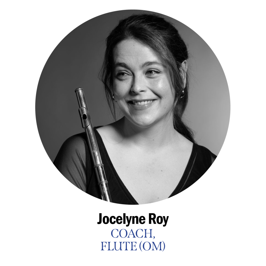 In 2006, Jocelyne Roy served as principal flute during the world tour of the Verbier Orchestra, under the baton of Herbert Blomstedt and Claus Peter Flor. As a soloist, she has performed with ensembles such as Les Violons du Roy, the Orchestre symphonique de Montréal, the Sinfonia Orchestra of the Manhattan School of Music, the Orchestre symphonique du Conservatoire de musique de Montréal, and the Orchestre symphonique des jeunes de Montréal.